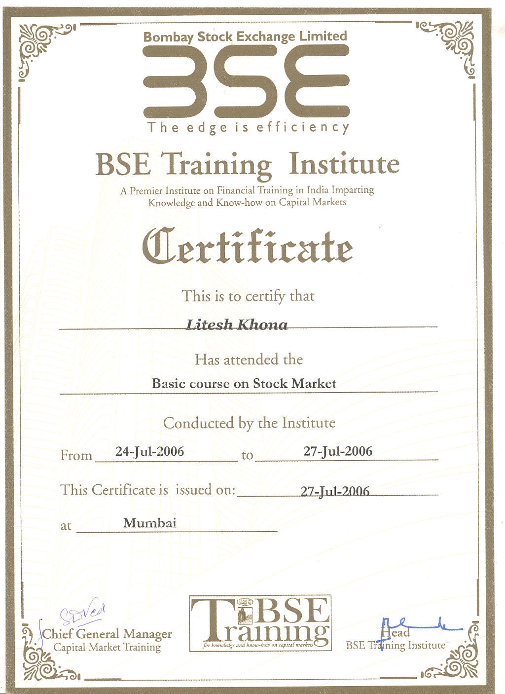 Certificates